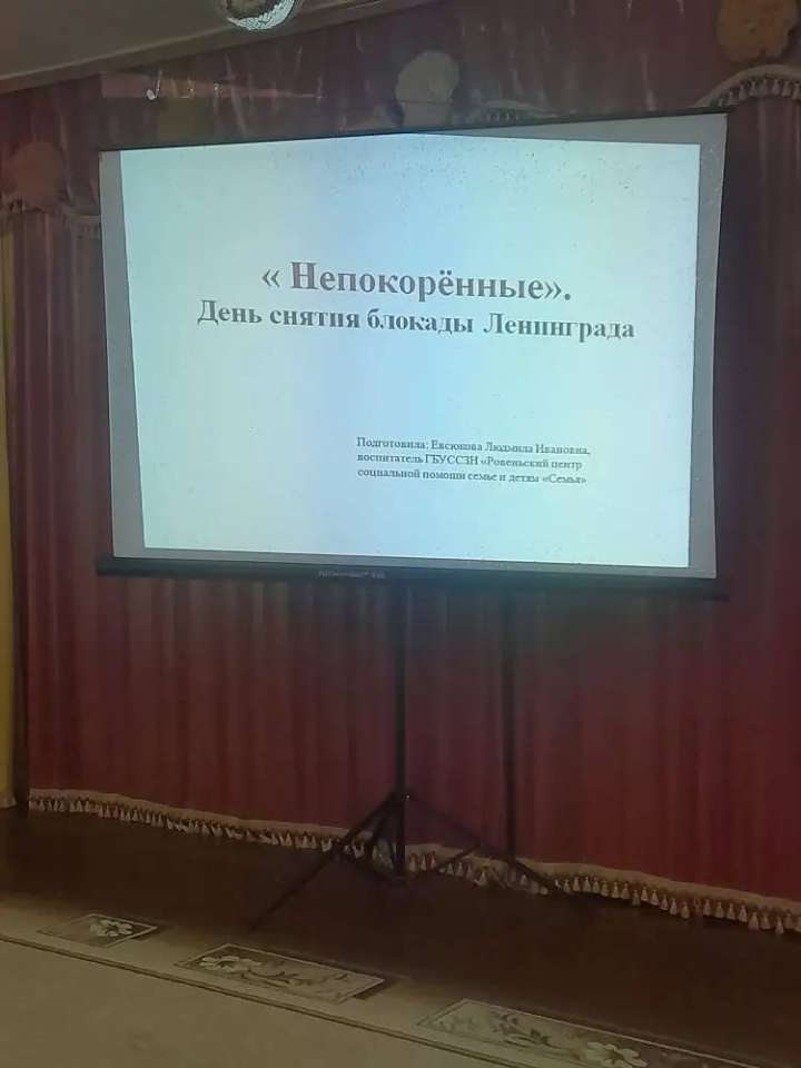 Блокада Ленинграда - один из наиболее трагических периодов в истории Великой Отечественной войны. Этот подвиг стал ярким примером стойкости и героизма советского народа в борьбе с фашизмом. 27 января, в день снятия блокады, в отделении социальной реабилитации было проведено мероприятие, приуроченное к этой важной дате «Блокада Ленинграда. Суровые факты». С воспитанниками была проведена беседа о жизни жителей осажденного города. Дети узнали о невероятном героизме и мужестве, которые проявили жители города на Неве во время блокады. О тяжёлых испытаниях, выпавших на долю жителей, и холоде, о детях и женщинах, работавших наравне с мужчинами на заводах, о защите и обороне Ленинграда советскими солдатами, о цене блокадного хлеба, о карточках. Все это произвело на ребят неизгладимое впечатление, каждый почувствовал волнение и трепет от той информации, которую узнал в этот день. В конце мероприятия воспитанники сделали вывод о том, что подвиг, совершенный людьми во время блокады, учит мужеству, стойкости и безграничной любви к Родине. Помнить о героях Великой Отечественной войны – священный долг потомков.